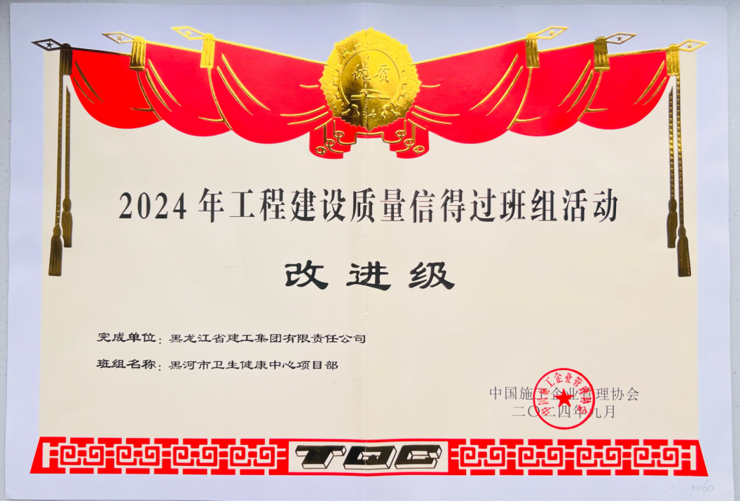 黑河市衛(wèi)生健康中心項目部2024年工程建設(shè)質(zhì)量信得過班組活動改進級