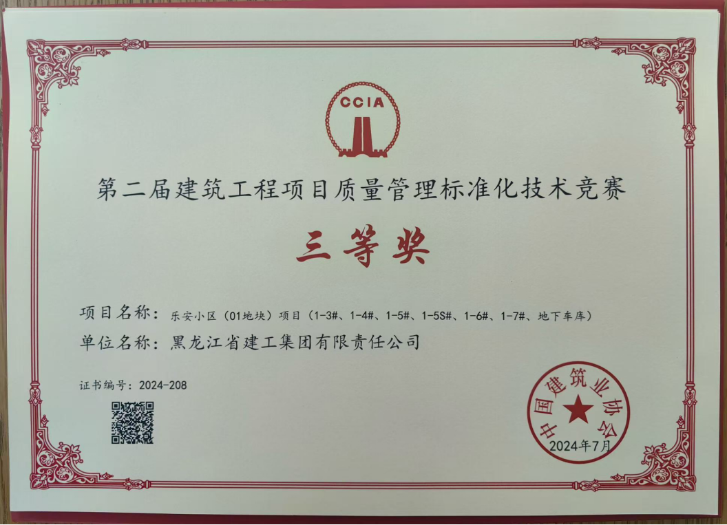 第二屆建筑工程項目質(zhì)量管理標準化技術(shù)競賽三等獎
